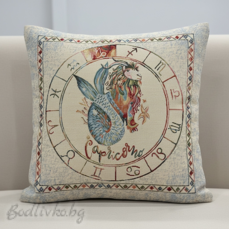 Декоративна калъфка за възглавница с мотив зодия Козирог, придаваща стил и индивидуалност на вашия дом.