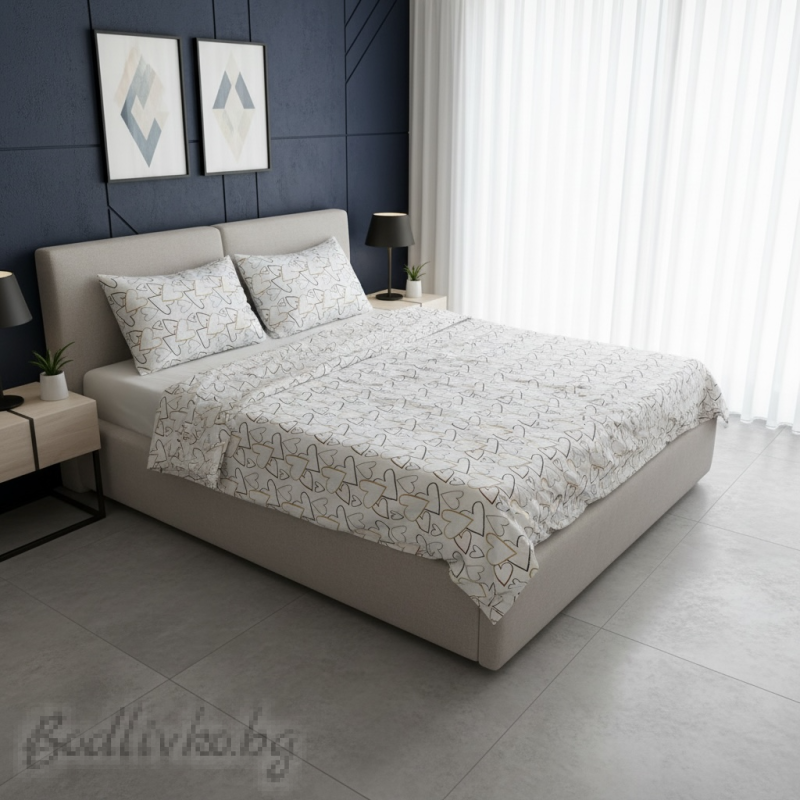 Спално бельо за Свети валентин или 8-ми март - „Дизайнерски сърца“ – 100% натурален памук (Ранфорс)
