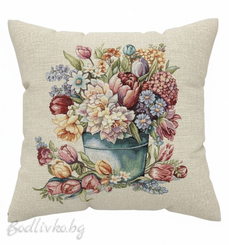 КАЛЪФКА за възглавничка, Пролетен букет, 45/45см.