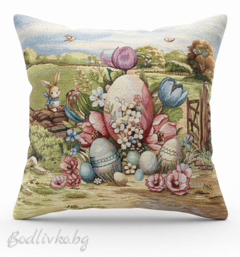 Превърнете дома си във великденска приказка с нашата красива калъфка за възглавничка "Великденски яйца"! Този очарователен аксесоар, с размери 45/45 см, е перфектният начин да внесете празнично настроение и пролетно очарование във всяка стая.