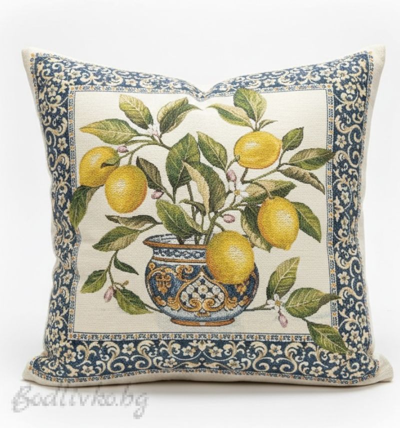 Освежете дома си с тази очарователна калъфка за възглавничка с мотив "Ваза с лимони"! 🍋