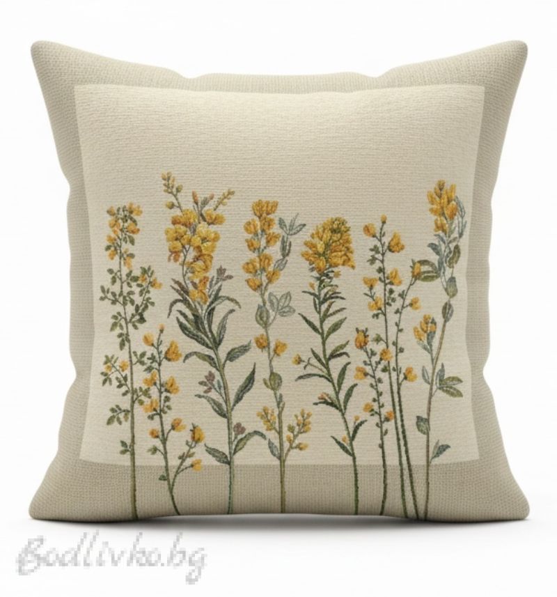 Преобразете интериора си с нашата красива калъфка за възглавничка "Горски жълти цветя"!