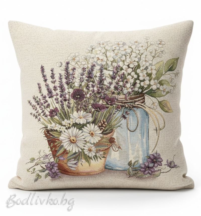 Предимства: * Размер: 45/45 см * Материал: Висококачествени и устойчиви материали * Дизайн: Нежни мотиви на лавандула и цветя * Поддръжка: Лесна за почистване и пране в пералня * Приложение: Идеална за декорация на всяка стая