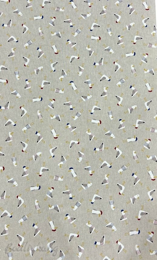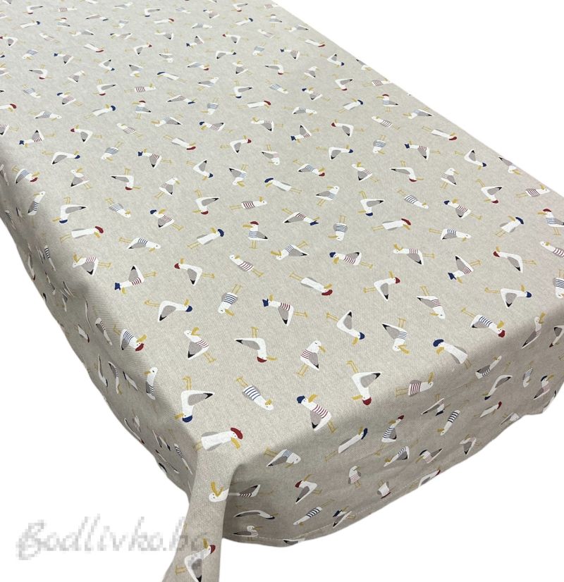Тази покривка за маса с гларуси е перфектен избор за всички, които обичат свежото, морско излъчване и естествените материи. Десенът с малки гларуси в нежни тонове внася лекота, уют и непринуден стил, като същевременно се съчетава лесно с различни интериори – от класически до морски и скандинавски.