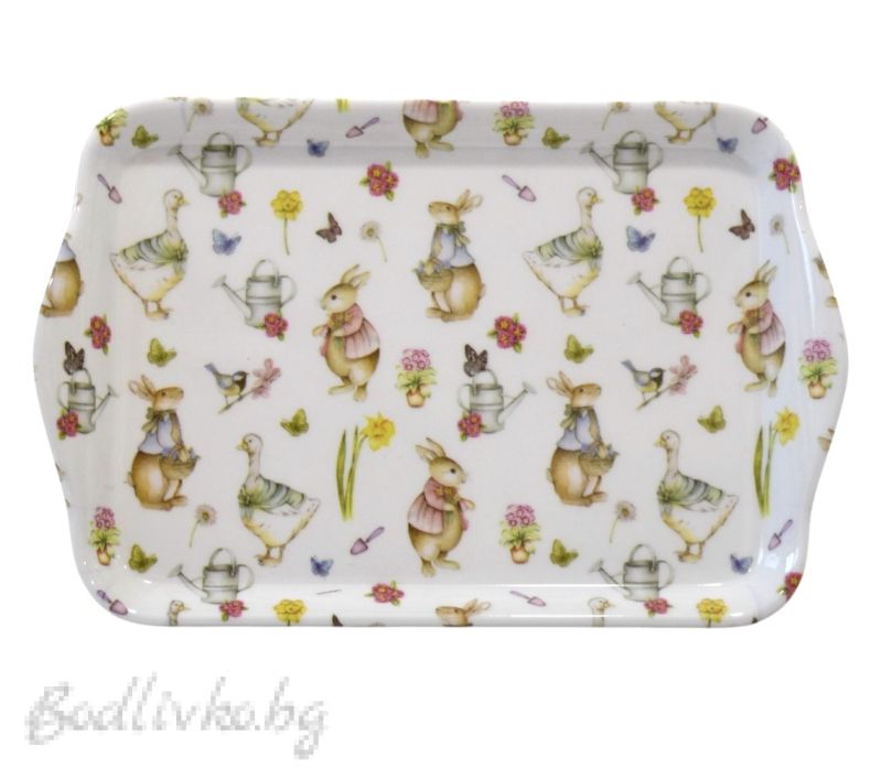 Пластмасов поднос Ambiente, Великденски зайчета, 21x13см.