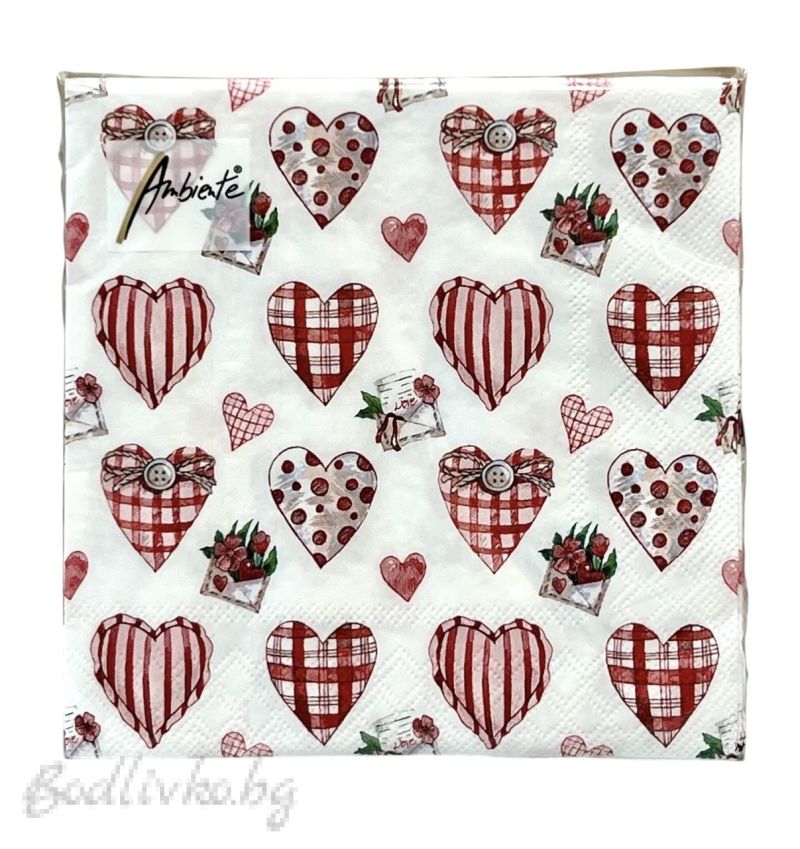 Салфетки, Ambiente, Сърца, 20 броя в опаковка