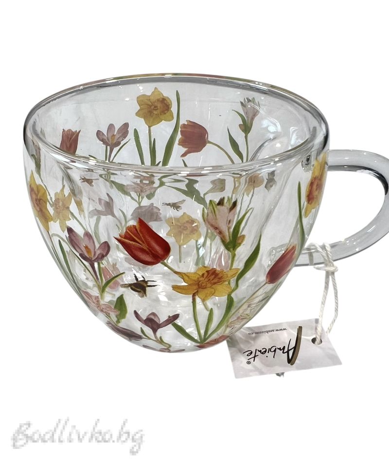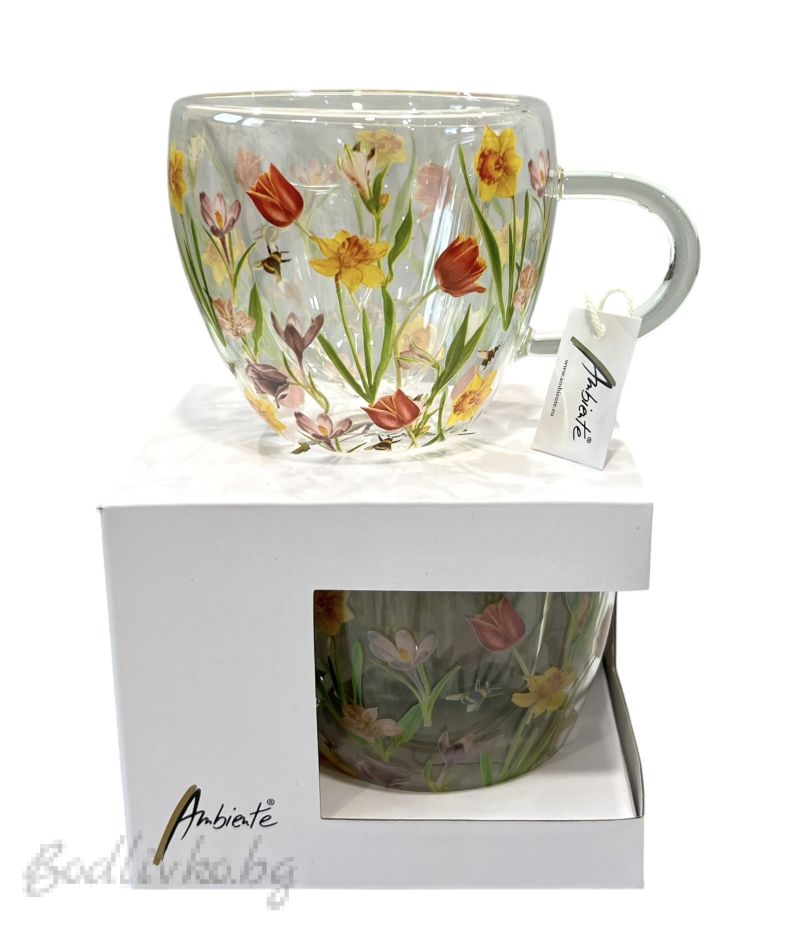 Двустенна стъклена чаша, Ambiente, Цветя, 200мл.