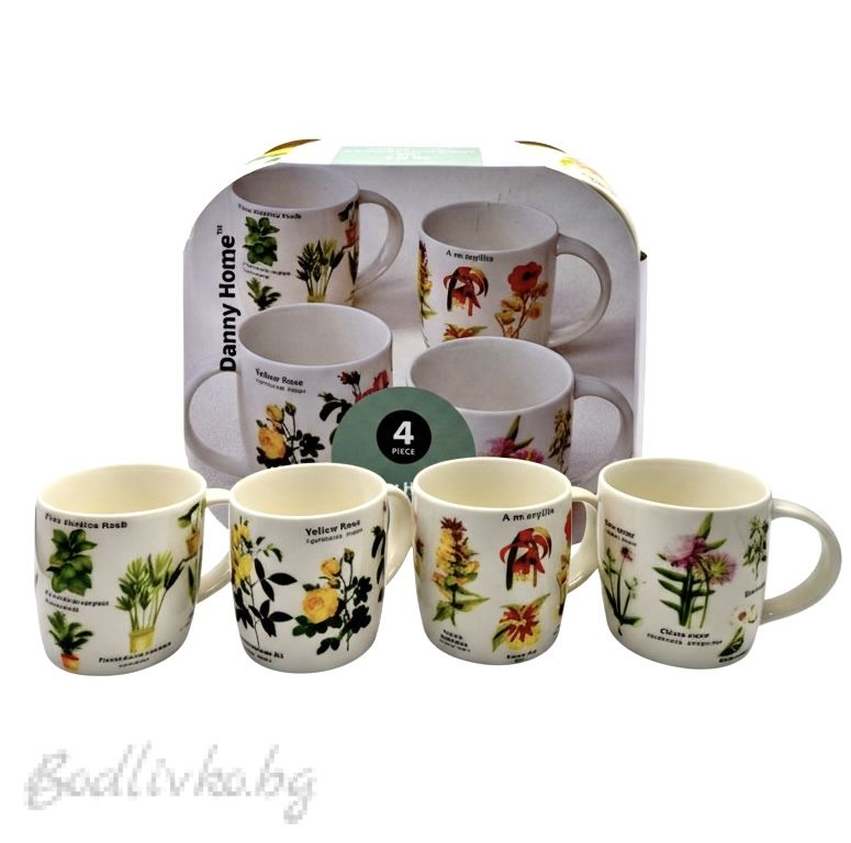 Комплект флорални порцеланови чаши 360мл., Danny Home, 4 броя в опаковка