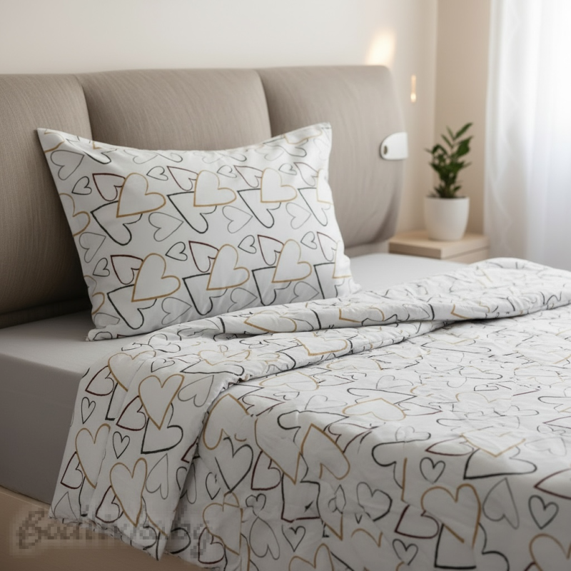 Спален комплект за единично легло "ДИЗАЙНЕРСКИ СЪРЦА"- 100% памук (Ранфорс), 3 части