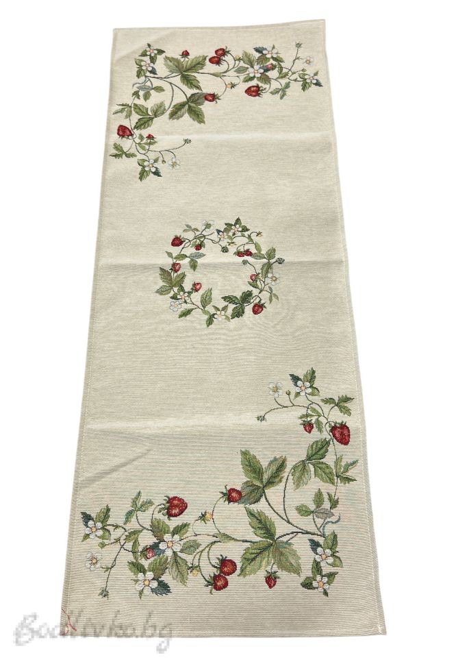 Размерът 40/100 см го прави подходящ за холна маса, кухненска маса, скрин или като декоративен акцент върху по-голяма покривка. „Горски ягоди“ е идеален избор за пролетно-лятна декорация, селски стил интериор или уютна атмосфера в дома и вилата.