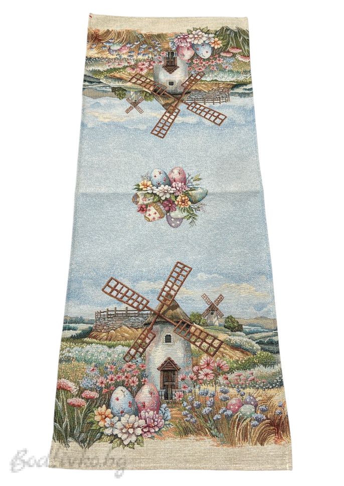 Размерът 40/100 см го прави подходящ за холна маса, кухненски плот или като акцент върху по-голяма покривка. „Великденска мелница“ е перфектен избор за сезонна украса, празнична трапеза или подарък за дома.