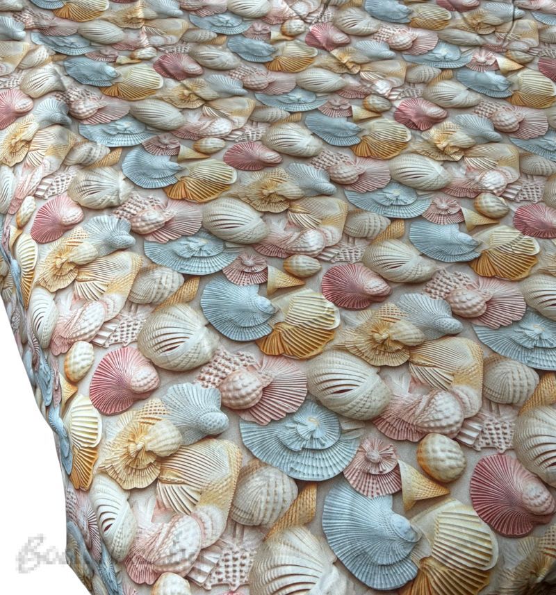 5D комплектът за единично легло „Нежни миди“ впечатлява с красив морски десен, изобразяващ разнообразни миди в меки пастелни нюанси – бежово, прасковено, розово и светлосиньо. Благодарение на 5D ефекта, всяка мида изглежда обемна и детайлна, създавайки усещане за дълбочина и реализъм.