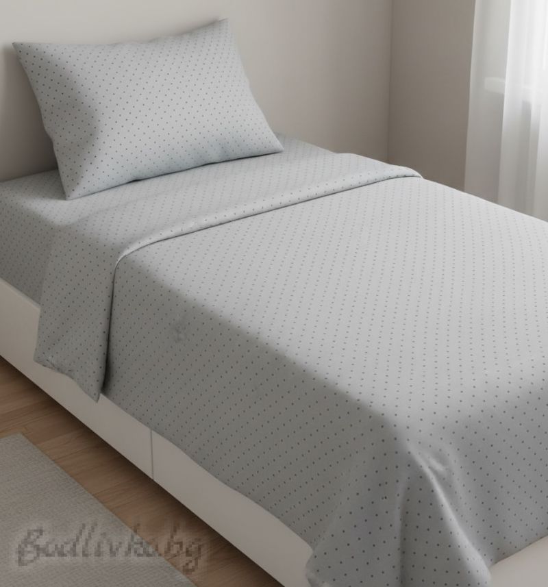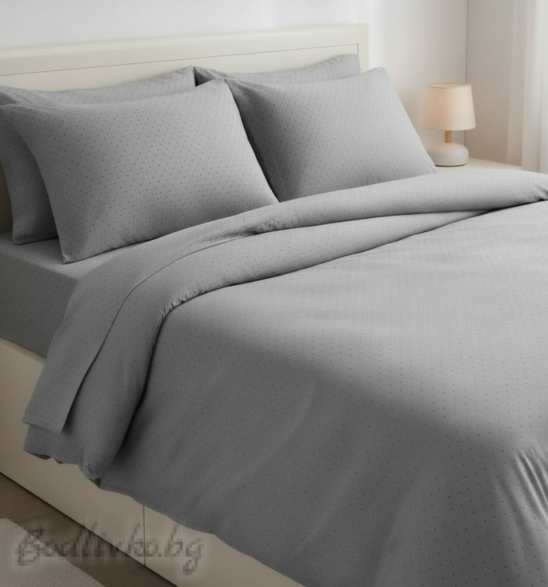 СПАЛЕН КОМПЛЕКТ, Ситни сиви точки, 100% натурален памук (ПОПЛИН), 4 части
