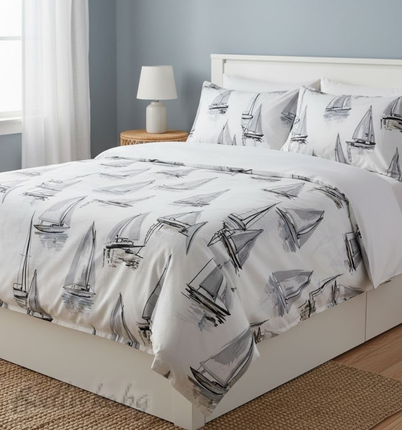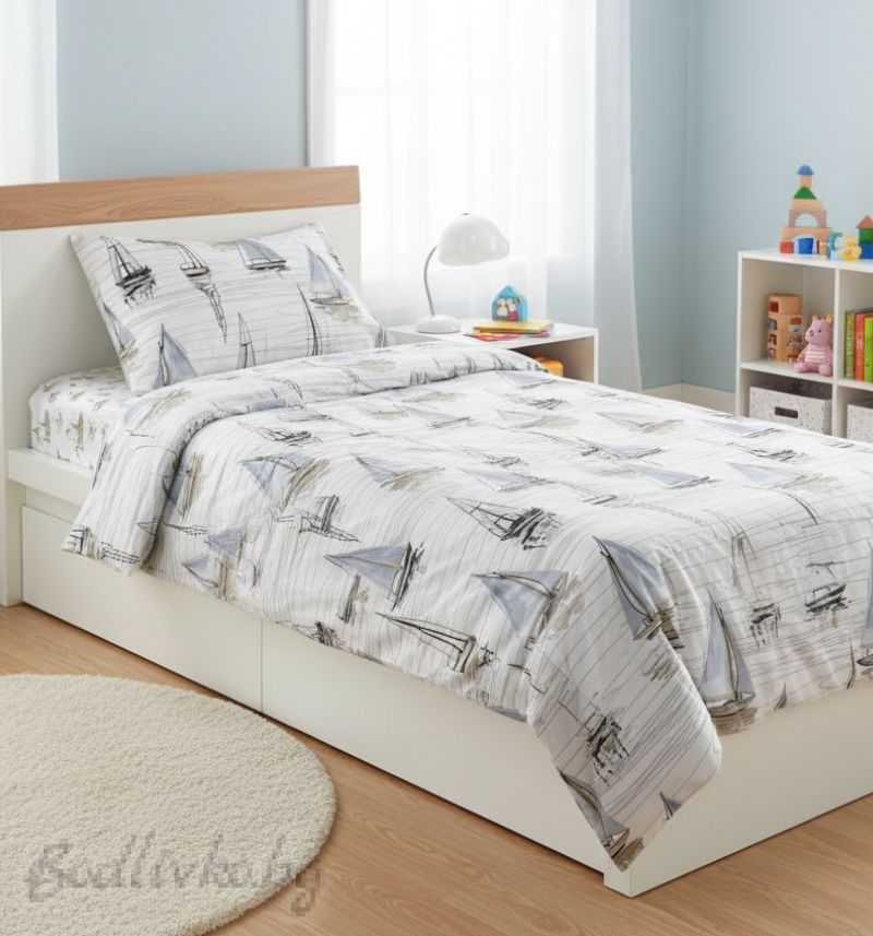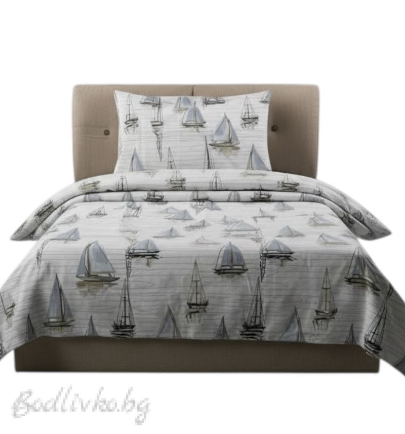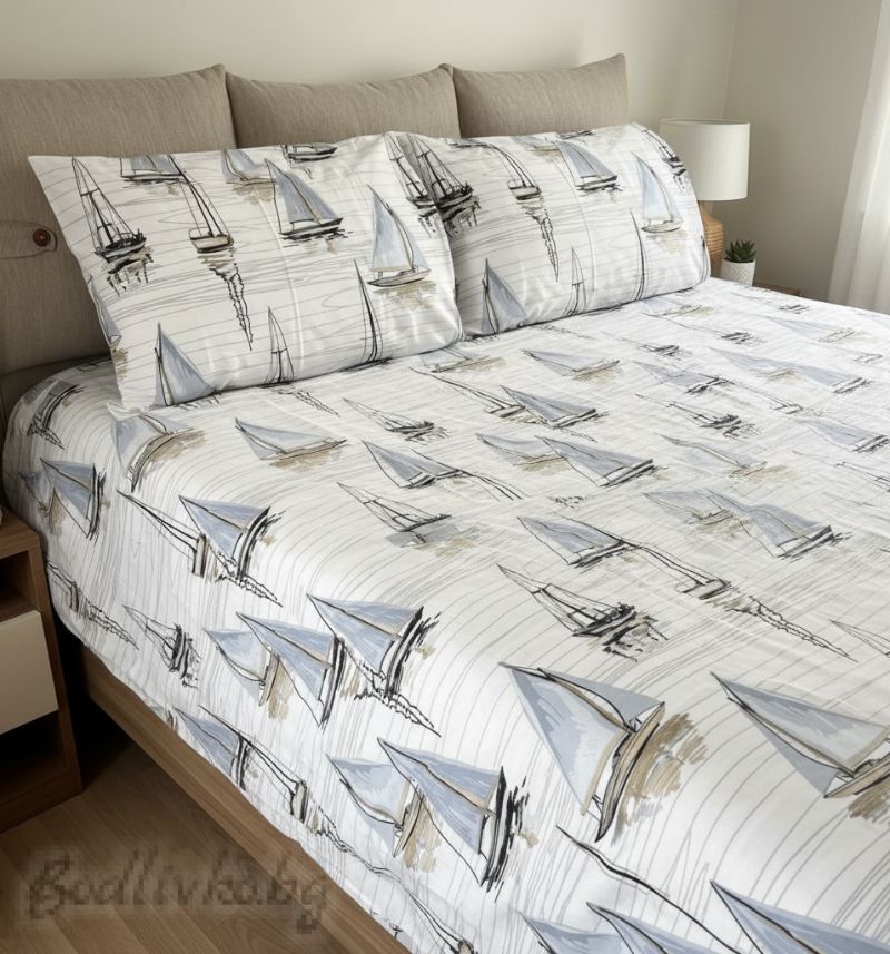 КОМПЛЕКТ ЗА СПАЛНЯ, Кораби – 100% натурален памук (Ранфорс), 4 части