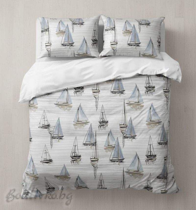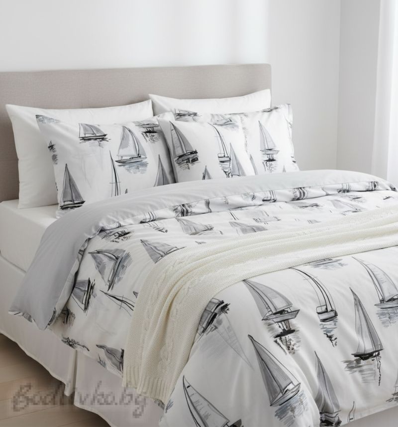 Начало СПАЛНО БЕЛЬО КОМПЛЕКТИ ЗА СПАЛНЯ КОМПЛЕКТ ЗА СПАЛНЯ, Кораби – 100% натурален памук (Ранфорс), 4 части