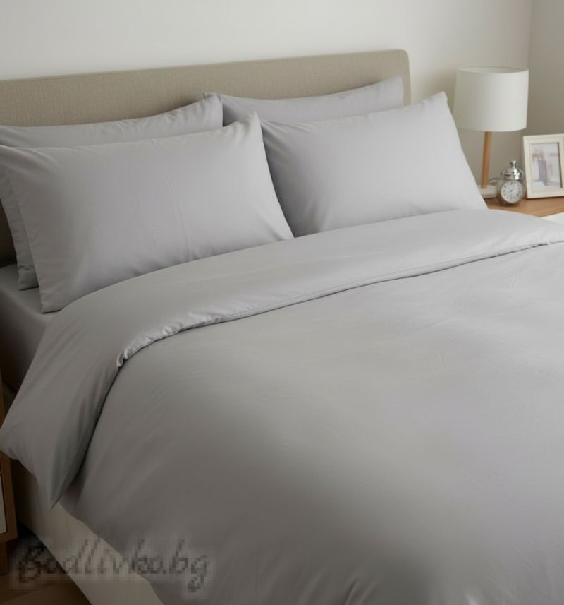КОМПЛЕКТ ЗА СПАЛНЯ, Едноцветно сиво – 100% натурален памук (Ранфорс), 4 части