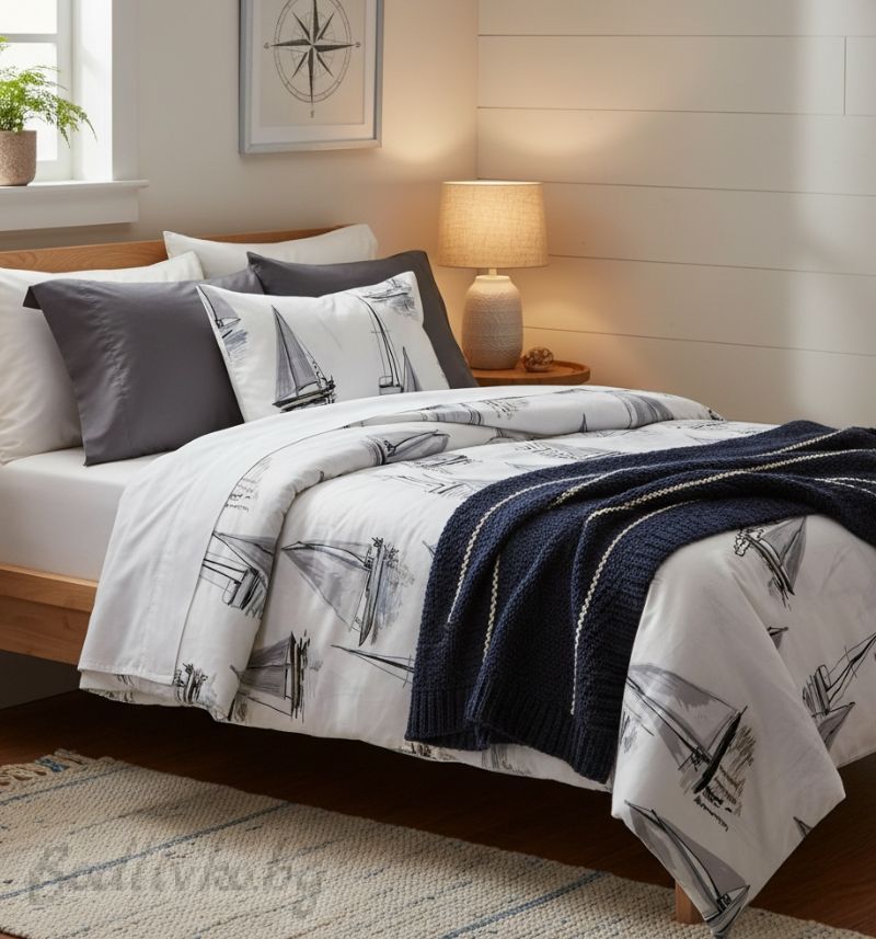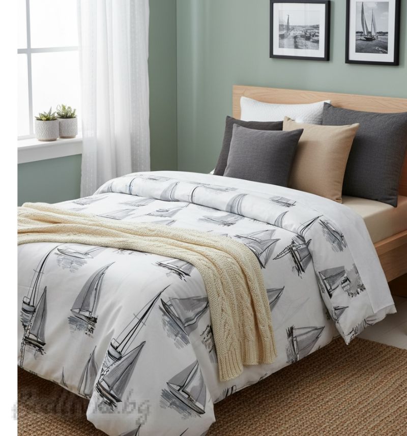 Начало СПАЛНО БЕЛЬО ЕДИНИЧНО ЛЕГЛО Спален комплект за единично легло, Кораби 3Д- 100% памук (Ранфорс), 3 части