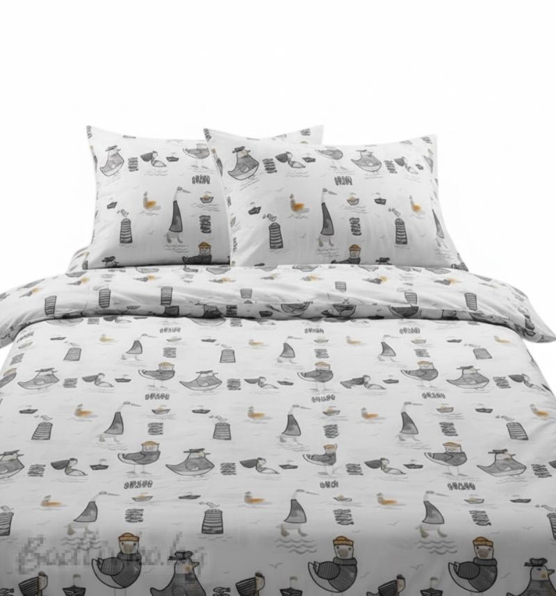 Спален комплект за единично легло, Сиви птици абстракт- 100% памук (Ранфорс), 3 части