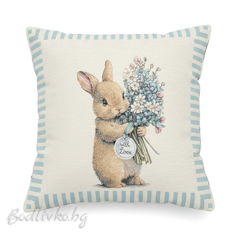 Жакардова калъфка за възглавница „Великденско зайче с букет“