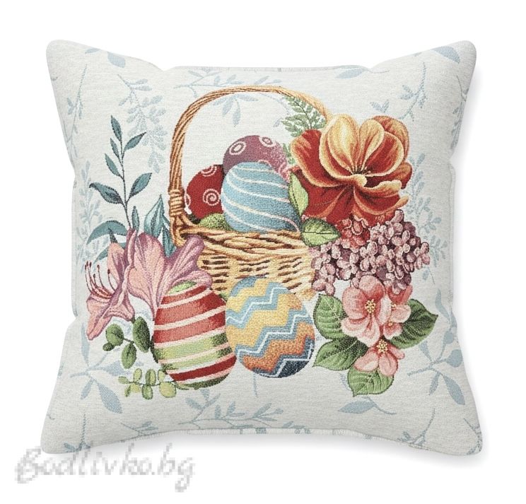 Жакардова калъфка за възглавница „Великденски яйчица в кошничка“