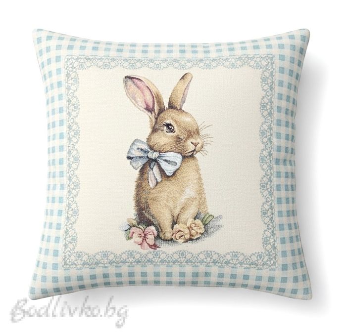 Жакардова калъфка за възглавница „Великденско зайче с панделка“