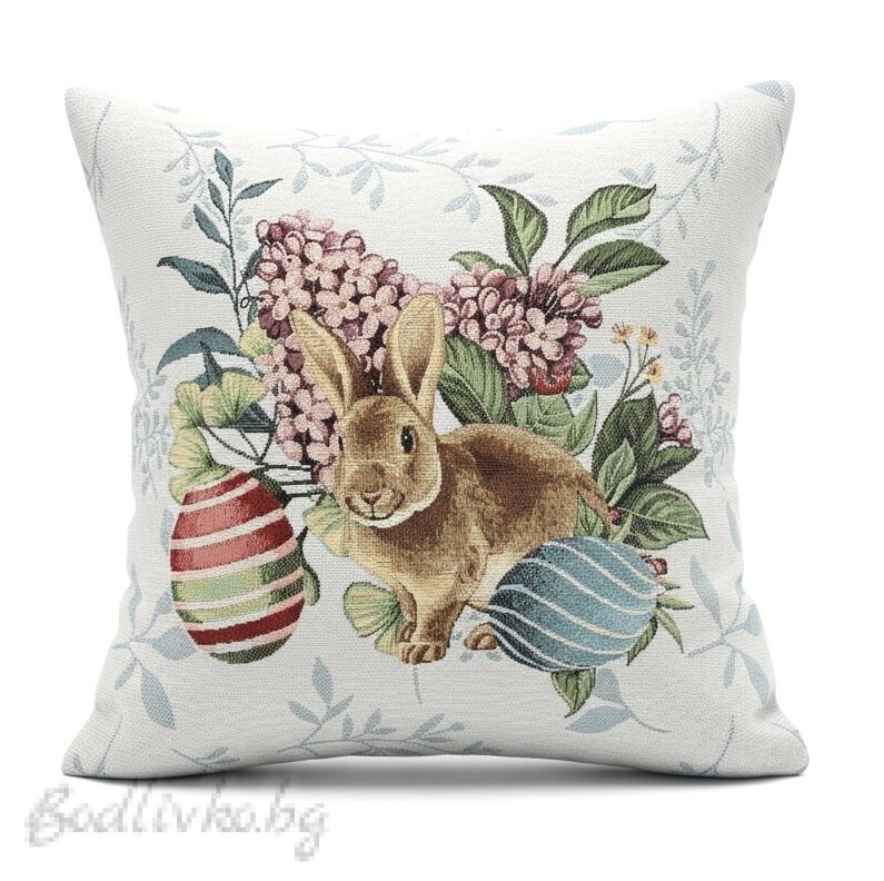 Жакардова калъфка за възглавница „Великденски заек с яйца“