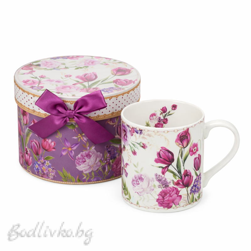Порцеланова чаша за кафе или чай в луксозна кутия, Лалета