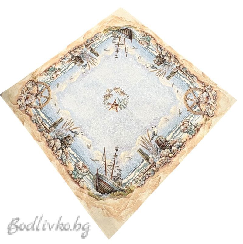 КАРЕ ЖАКАРД,МОРСКА ТЕМА ГЛАРУС, 100/100СМ.