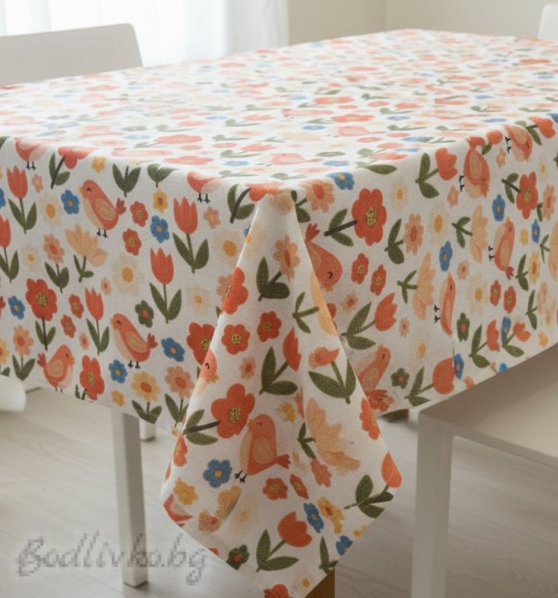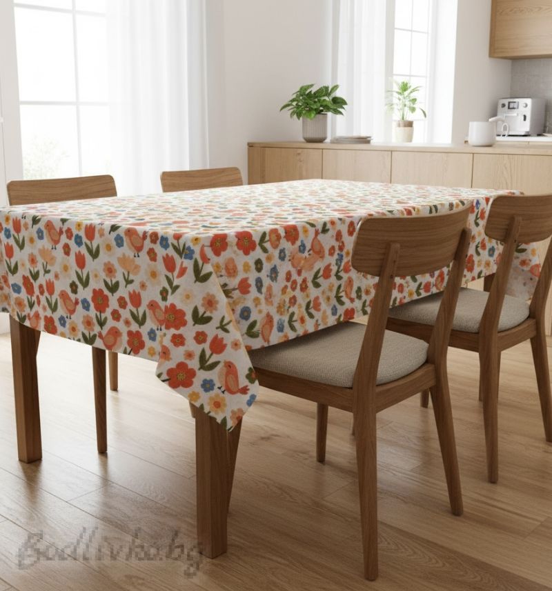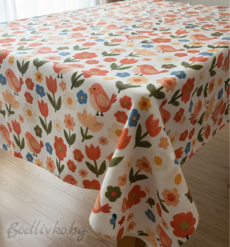 Покривка за маса с пролетна тематика от хидрофобиран текстил