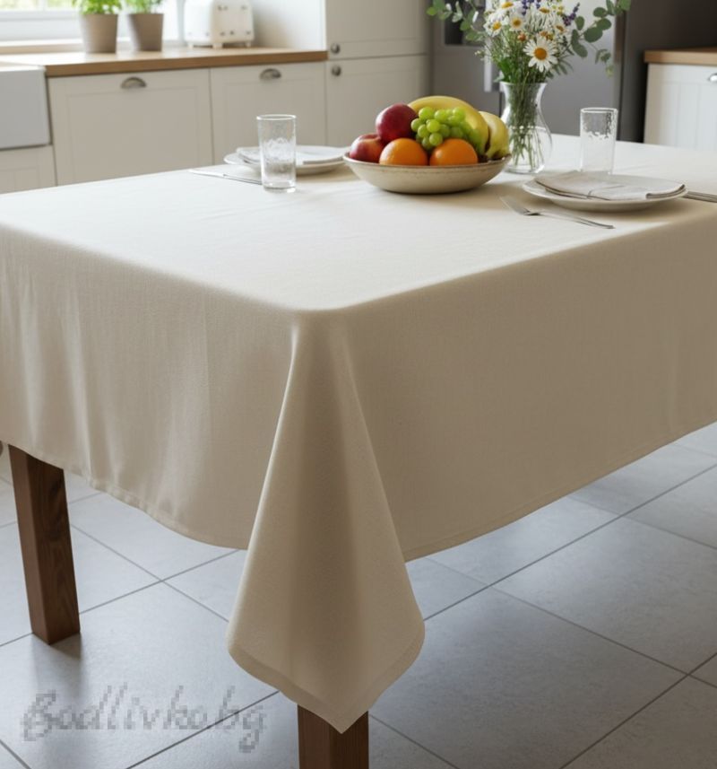 ПОКРИВКА ЗА МАСА, Едноцветна- Екрю , ХИДРОФОБИРАНА