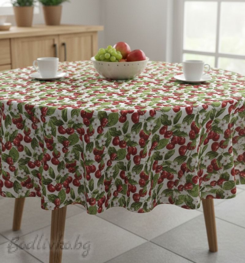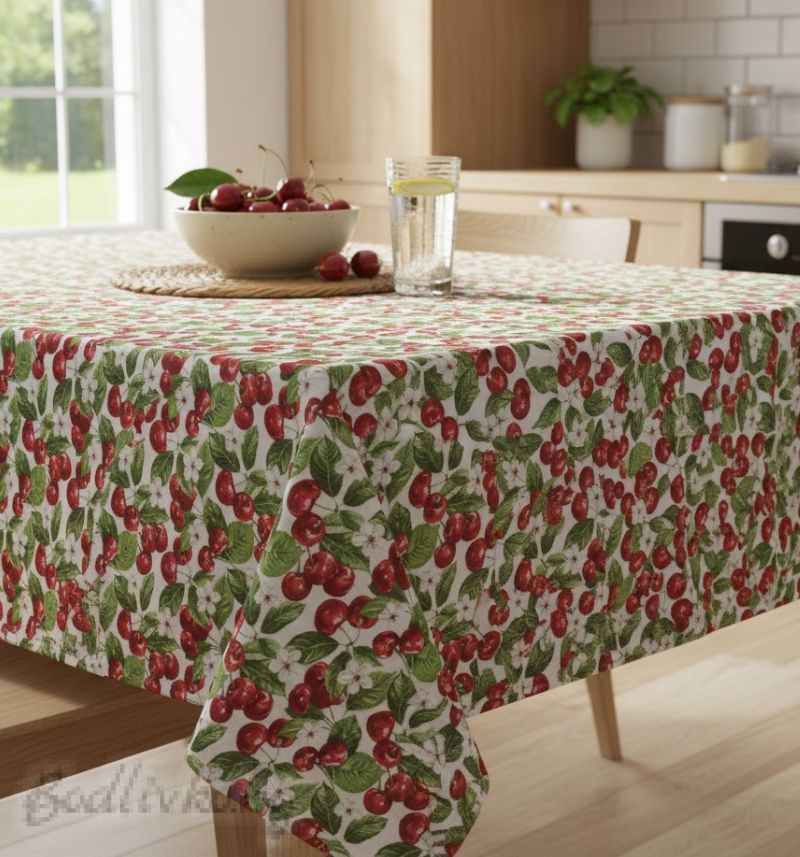 ПОКРИВКА ЗА МАСА Черешки, 60% памук/40% полиествер, материя Лонета