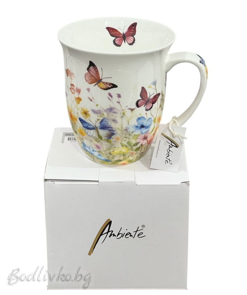 Чашата е изработена от висококачествен порцелан, който осигурява издръжливост и дълготрайност. Изящният дизайн с пеперуди и цветя придава на чашата очарователен и нежен вид, което я прави перфектна за всеки, който цени красотата и елегантността. С вместимост от 400 мл, тази чаша е идеална за всякакъв вид топли напитки, от ароматно кафе до успокояващ чай.