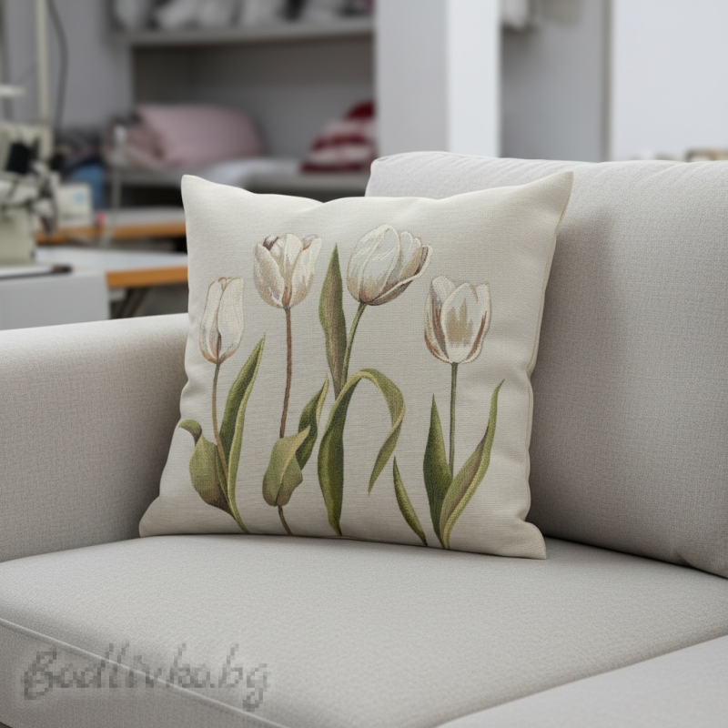 Внесете изисканост и стил във вашия дом с нашата калъфка за възглавница "Бели лалета". Този изключителен аксесоар ще преобрази всяко пространство, добавяйки нотка елегантност и комфорт.