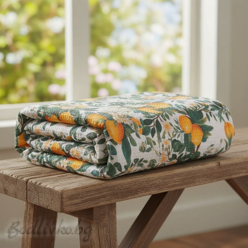 ПОКРИВКА ЗА ЛЕГЛО/ ОДЕЯЛО– ПИКЕ-Лимони, 100% памук