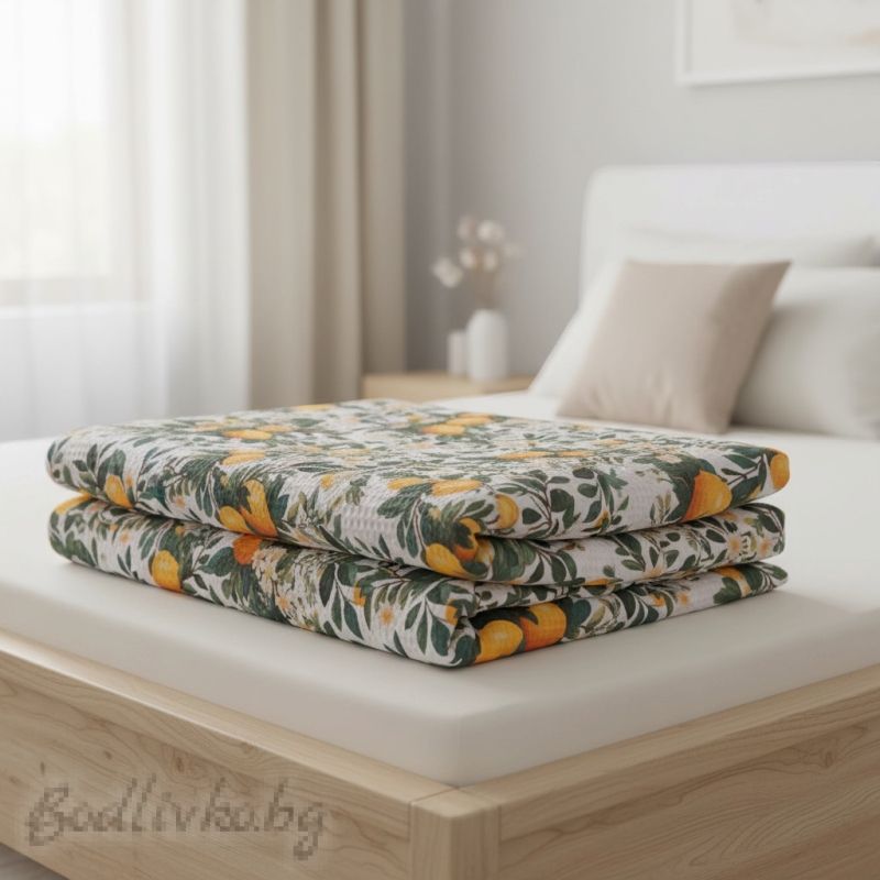 Насладете се на комфорта и стила с нашата покривка за легло, изработена от 100% памук и материя пике.