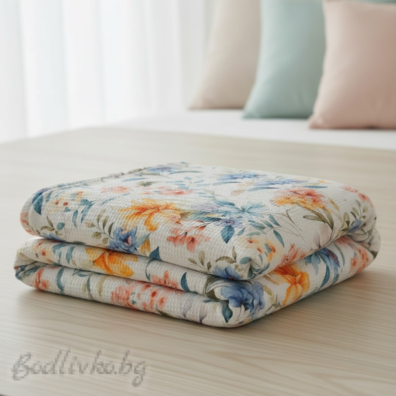 ПОКРИВКА ЗА ЛЕГЛО/ ОДЕЯЛО– ПИКЕ-Цветя, 100% памук