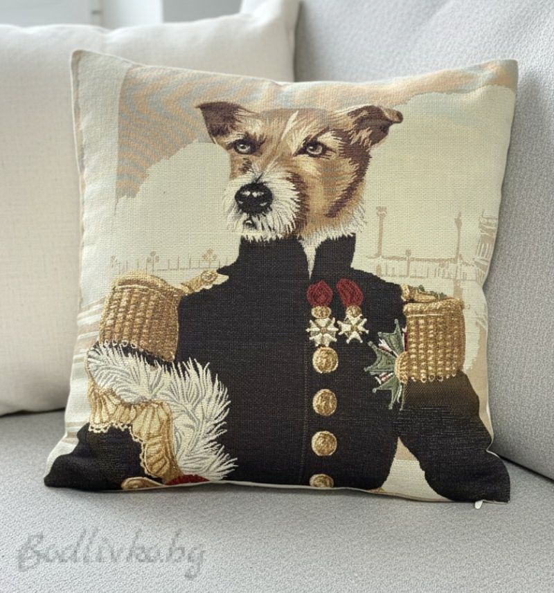 Начало ЖАКАРДОВИ ИЗДЕЛИЯ ДЕКОРАТИВНИ КАЛЪФКИ КАЛЪФКА за възглавничка, ГОСПОДИН КОТАРАК, 45/45см.