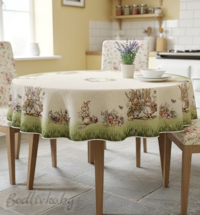ПОКРИВКА ЗА МАСА ЖАКАРД, ЗАЙЧЕТА НА РАЗХОДКА, Ф140СМ.