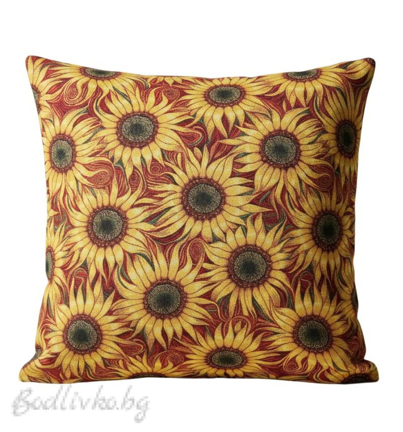 Начало ЖАКАРДОВИ ИЗДЕЛИЯ ДЕКОРАТИВНИ КАЛЪФКИ КАЛЪФКА за възглавничка, СЛЪНЧОГЛЕДИ, 45/45см.