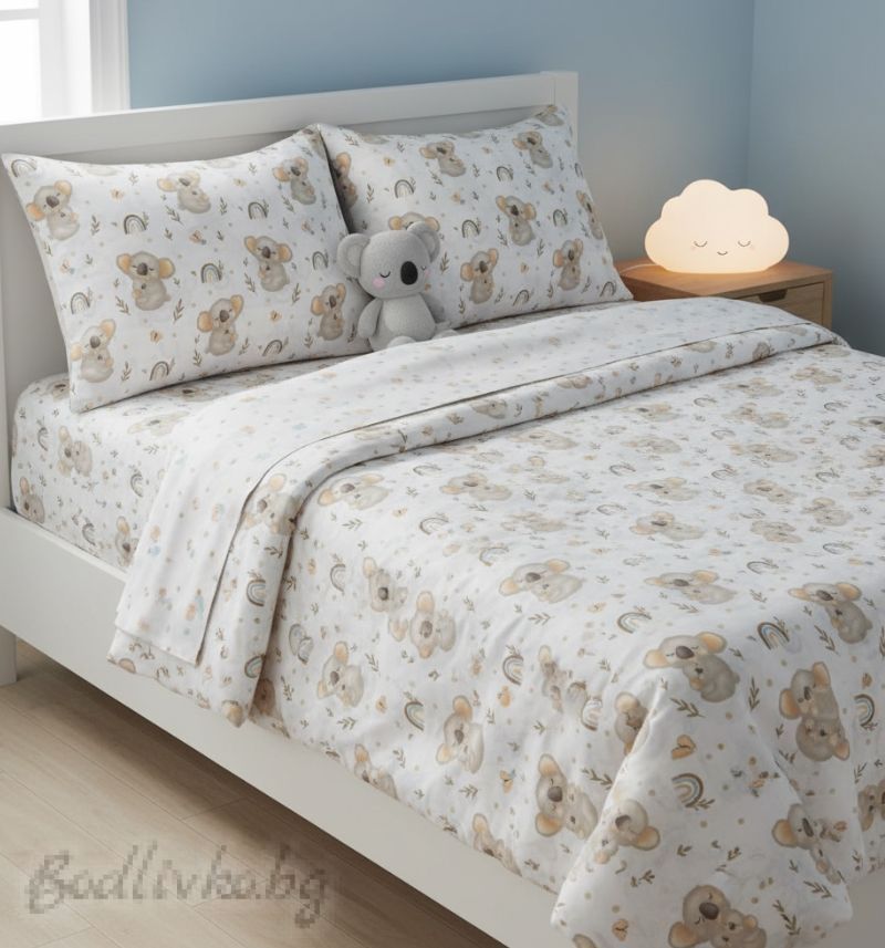 КОМПЛЕКТ ЗА ЕДИНИЧНО ЛЕГЛО, КОАЛА , 100% натурален памук (ПОПЛИН), 3 части