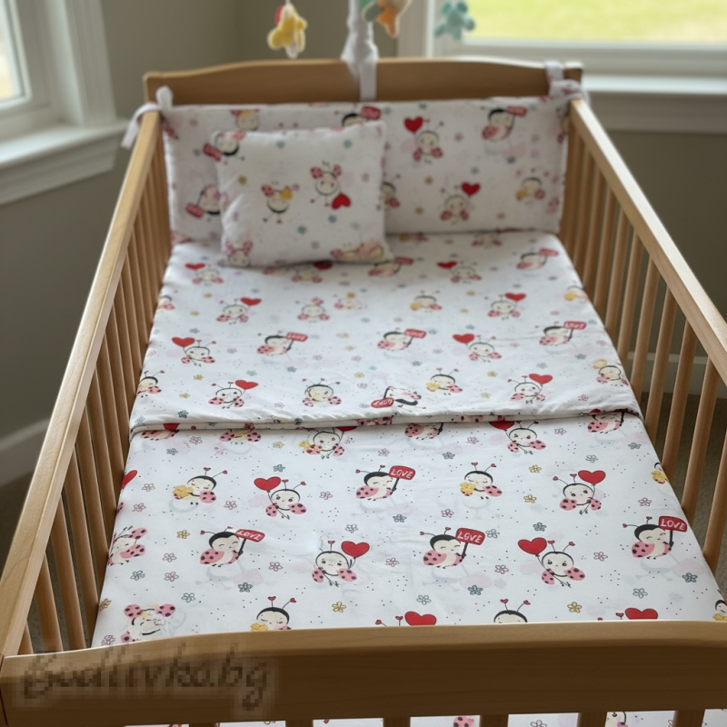 Подарете на вашето дете сладки сънища с нашето очарователно спално бельо, украсено с мили калинки, носещи любов и радост! Перфектен избор за създаване на уютна и весела обстановка в детската стая.