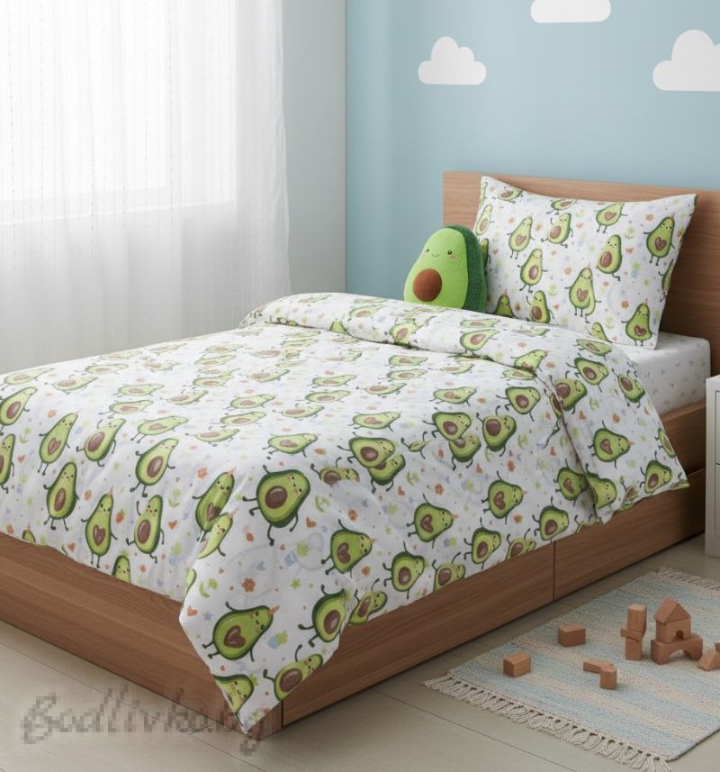 КОМПЛЕКТ ЗА ЕДИНИЧНО ЛЕГЛО, АВОКАДО, 100% натурален памук (ПОПЛИН), 3 части