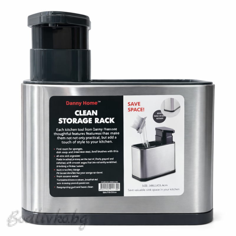Поддържайте мивката си чиста и организирана с този органайзер Danny Home! Той е с размери 18 х 11 х 18.8 cm и разполага с вграден дозатор за сапун, за да имате всичко необходимо под ръка.