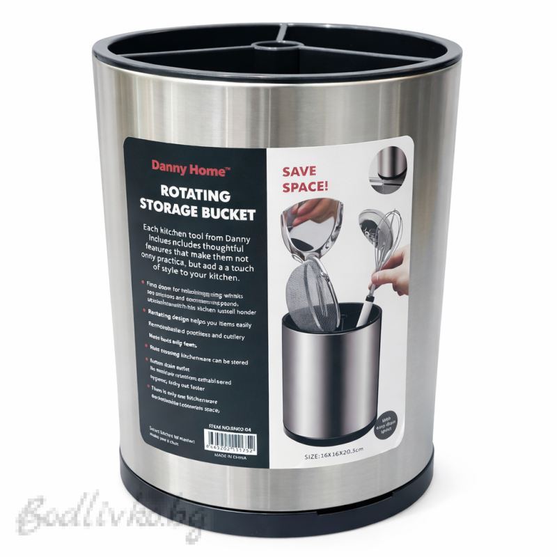 Организирайте кухненските си прибори със стил и удобство с въртящия се на 360° сушилник Danny Home! Този практичен органайзер не само спестява място, но и позволява лесен достъп до всички ваши кухненски инструменти.