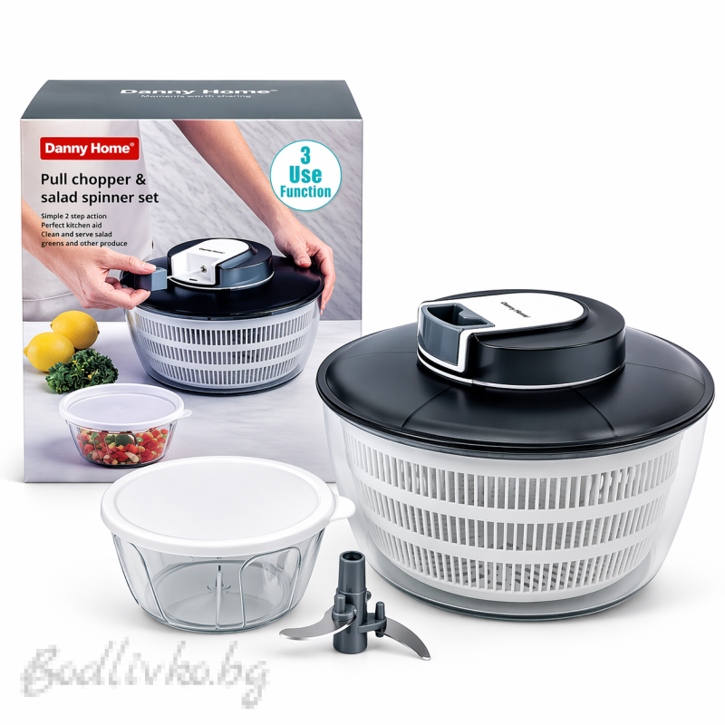 Представяме ви комплекта Danny Home от чопър с въже и центрофуга за салата, идеалното решение за бързо и лесно приготвяне на здравословни ястия!